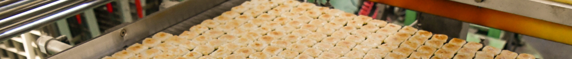 きれいに整列し、上下2枚の鉄板で高温プレスされ、一気に焼き上げられます。2枚の鉄板は170度台後半~190度台後半に設定されています。